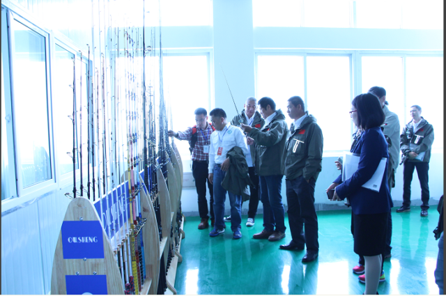 4月28日,參加2016年“寧波杭州灣中源杯”中國首屆CAA會員釣魚節(jié)新聞發(fā)布會的中國釣魚運(yùn)動協(xié)會領(lǐng)導(dǎo)、CAA各省級會員中心主任及相關(guān)項目負(fù)責(zé)人、行業(yè)內(nèi)外新聞媒體記者、企業(yè)代表等近百人,參觀了釣魚節(jié)的主要發(fā)起單位、新聞發(fā)布會主辦單位——寧波中源歐佳漁具股份有限公司。董事長張國軍,總經(jīng)理嚴(yán)軍威等主要領(lǐng)導(dǎo)陪同參觀。